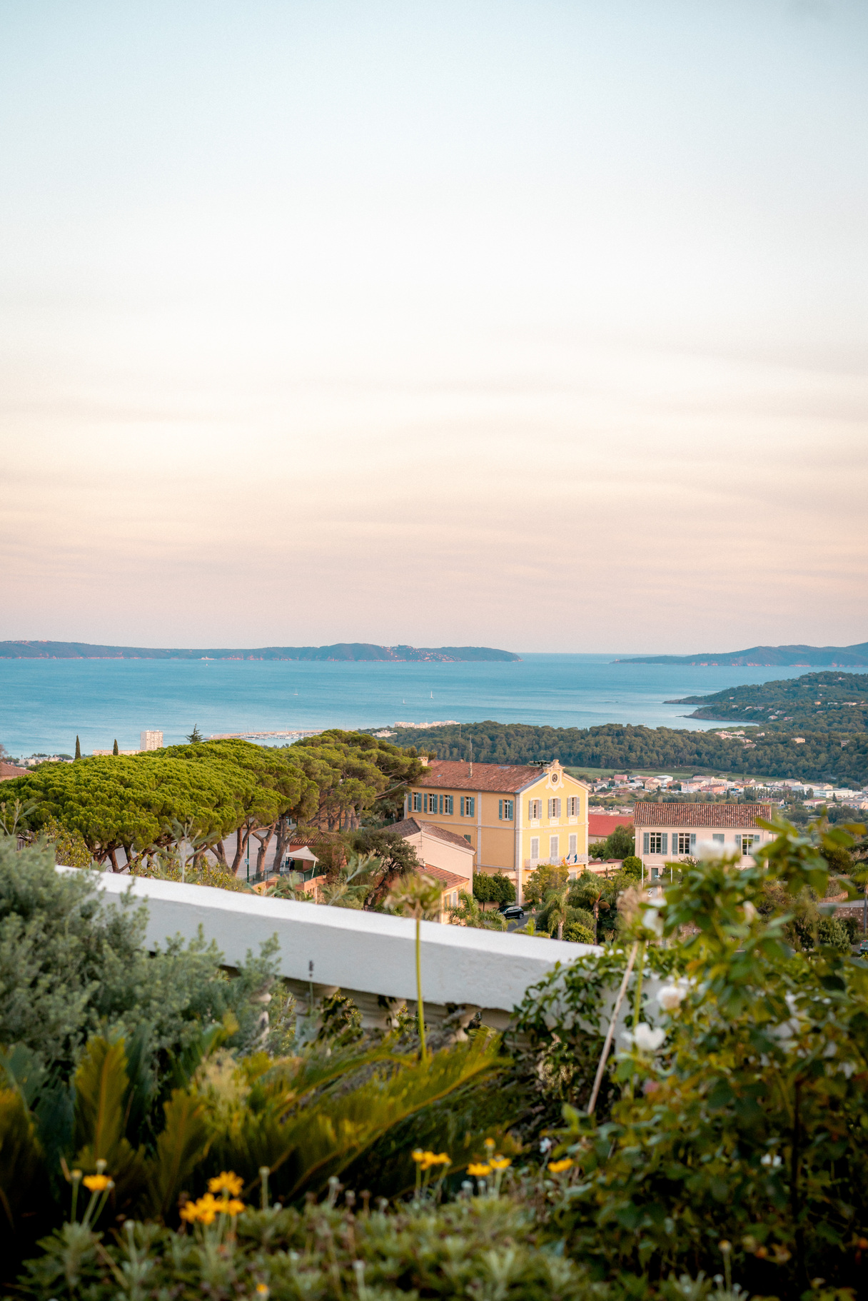 La terrasse avec vue panoramique sur la Mer Méditerranée et ses Îles d’Or peut accueillir jusqu’à 80 personnes assises.